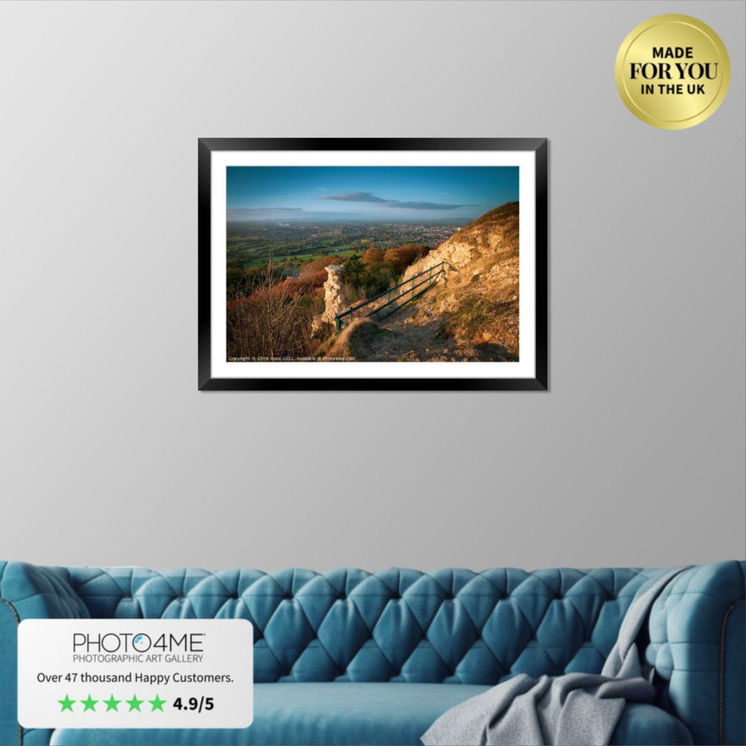 England, Gloucestershire, Cotswolds, the Devils Chimney glowing in evening sun on Leckhampton Hill above the town of Cheltenham