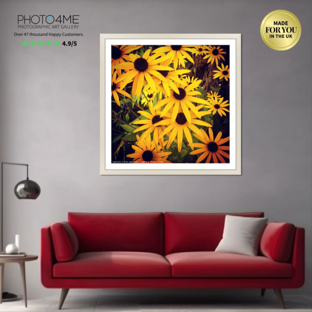 Vibrant yellow rudbeckia flowers close up filling the frame