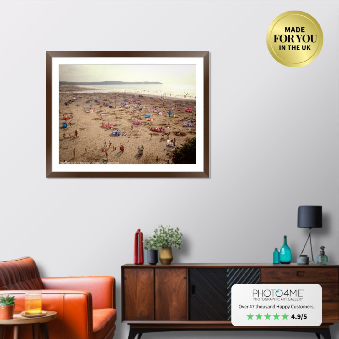 Crowded beach at Woolacombe, Exmoor, Devon, England, UK. Archive photo: August 1993.
