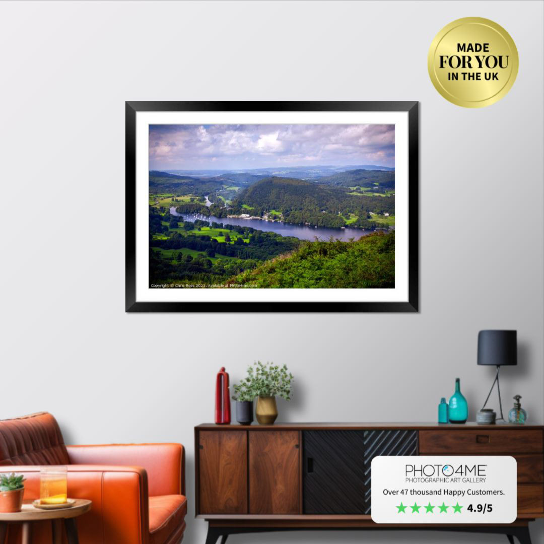 The view over the southern end of Lake Windermere from the footpath to Gummers How, a well known viewpoint in The Lake District, Cumbria, UK