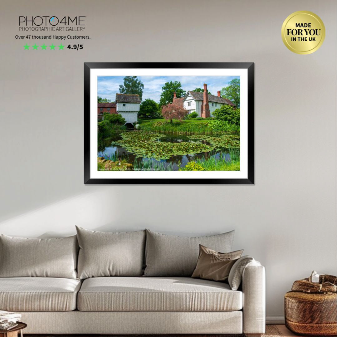 The picturesque moated manor house at historic Brockhampton Estate on a beautiful spring day, Herefordshire, UK