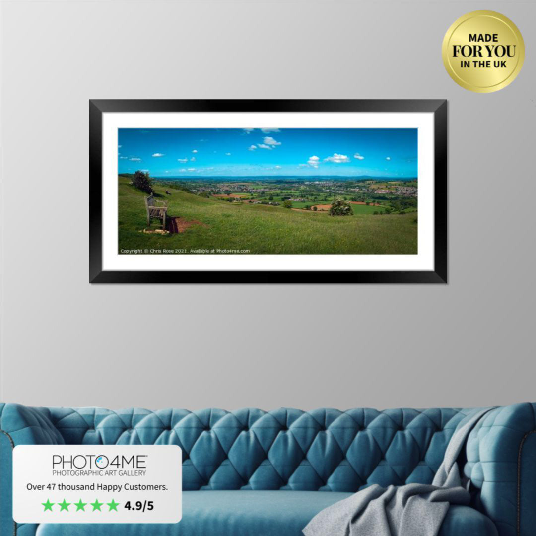 The view from Selsley Common over a patchwork of fields in The Severn Vale, Gloucestershire, UK.