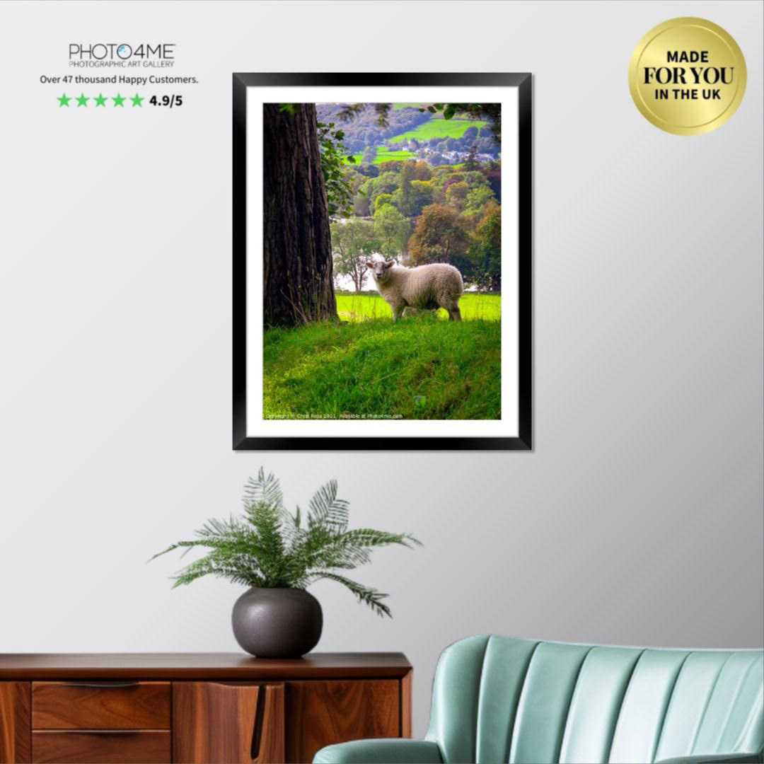 A single sheep posing on the edge of a field near Ambleside in The Lake District, Cumbria, UK